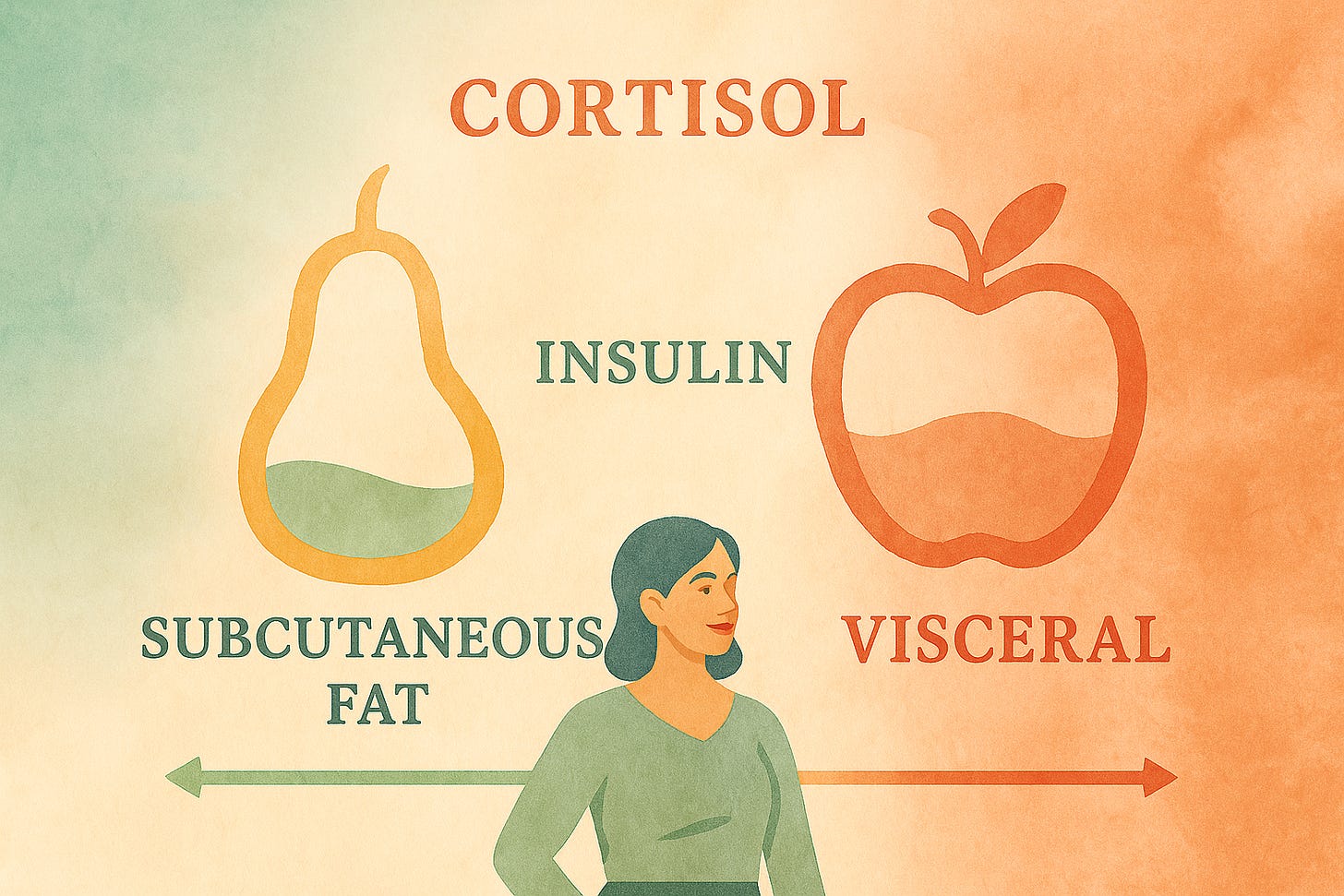 But when estrogen drops, something fundamental changes. Your body starts directing fat to a different location: deep inside your abdomen, wrapped around your organs. This is called visceral fat, and it behaves completely differently from the subcutaneous fat under your skin.