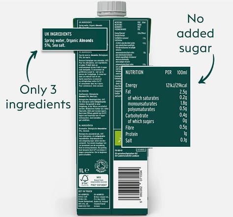 Plant milk: Some list “almonds, water, salt.” Some have a long string of additives, thickeners, and sweeteners. Choose versions with short, recognisable ingredient lists.